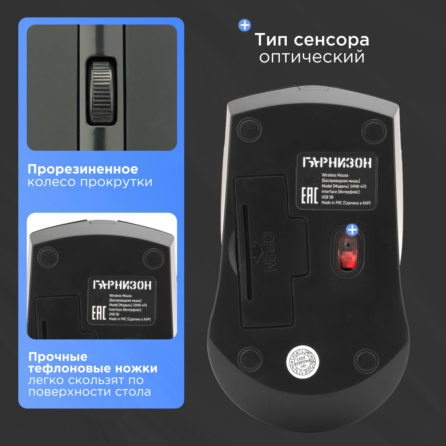 Мышь Гарнизон GMW-470, черный (GMW-470) оптический, 1000 dpi, радиоканал информация: