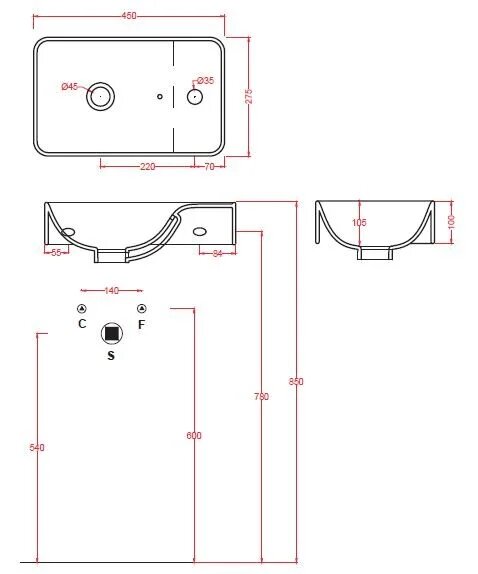 | Дополнительная информация | Комплектация | Раковина - 1 шт. , Крышка перелива - 1 шт., Инструкция - 1 шт.;Возможное основание под раковину | столешница/без основания (подвесная);Гарантия | 5 лет;Гарантия | 5 лет;Расстояние от смесителя до слива, см | 22;Страна | Италия;Ширина, см | 45; |