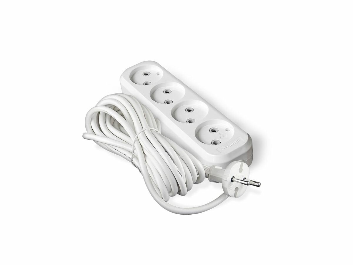 10 цен на Удлинитель бытовой 4 гнезда, 7 м, ПВС, 2х1 мм², без заземления, белый, UNIVersal, У6-766 М, 766М-07