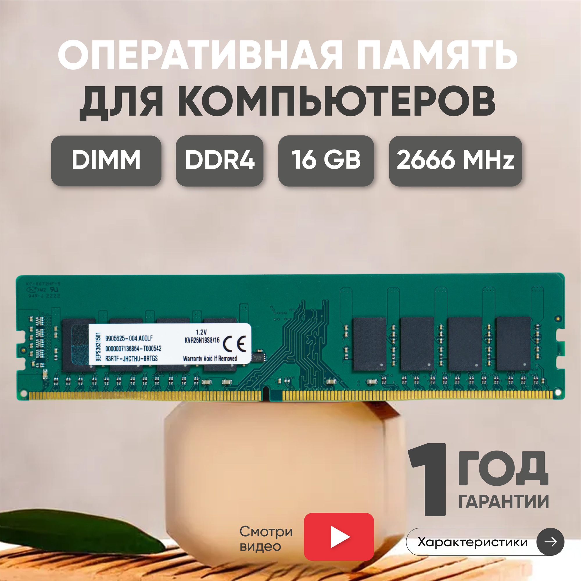 10 цен на Модуль памяти Kingston DIMM DDR4, 16ГБ, 2666МГц, PC4-21300, CL19 19-19-19-43