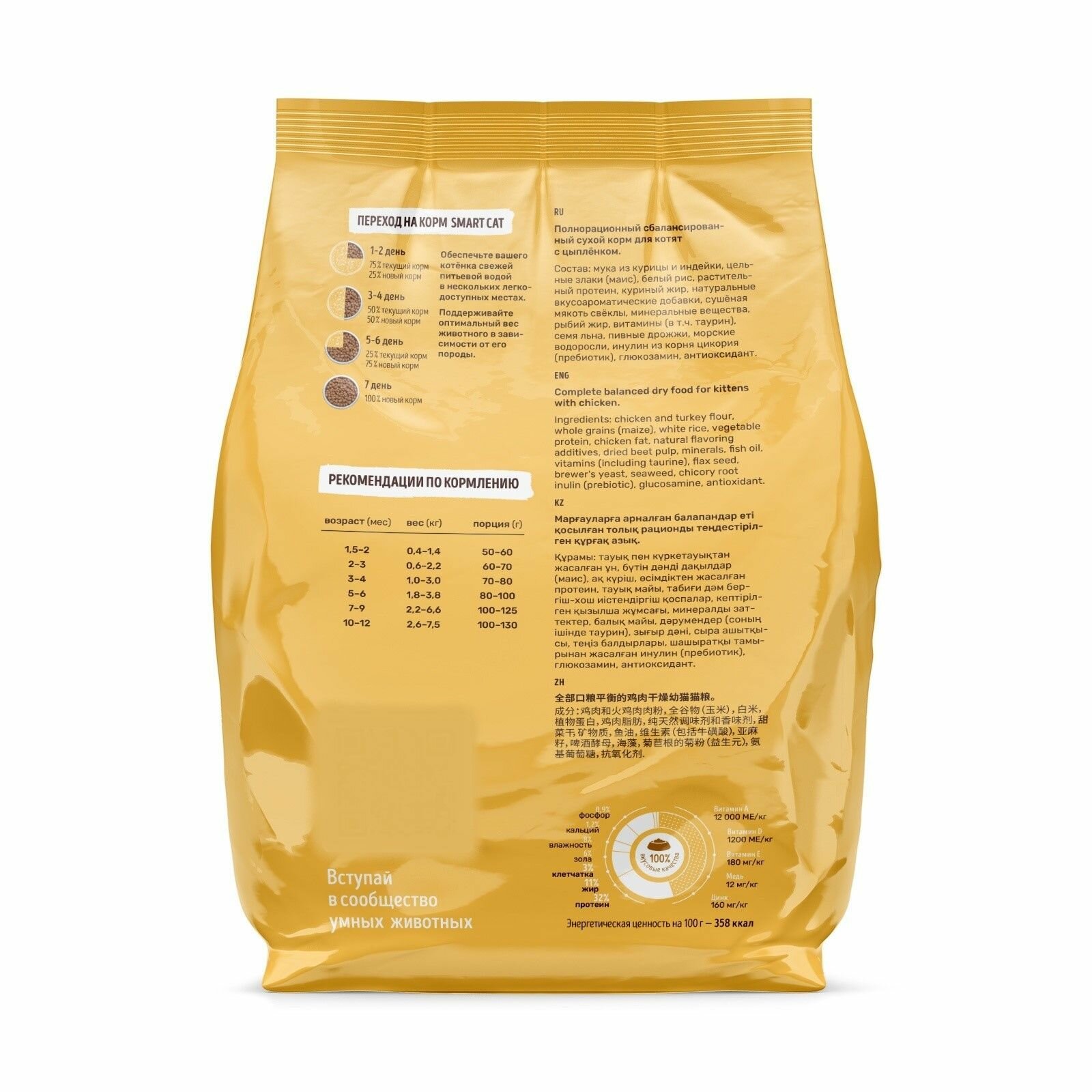 Smart Cat Сухой корм для котят с индейкой, цыпленком и овощами, KITTEN, Turkey, Chicken and vegetables, 5кг информация: