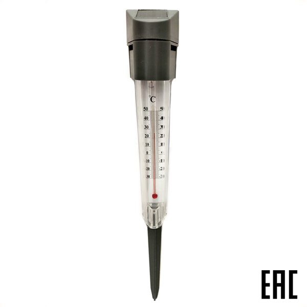 ЭРА ERATR024-02 Садовый светильник-градусник на солн батарее, сталь, пластик, серый, 33 см Б0038503 информация: