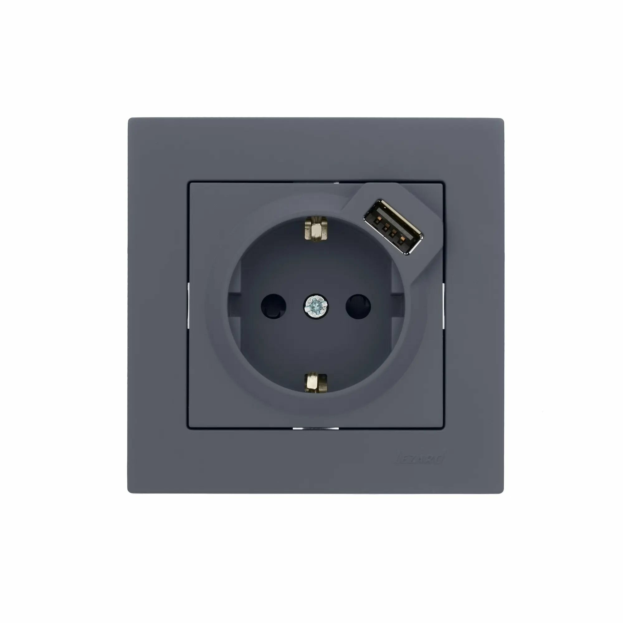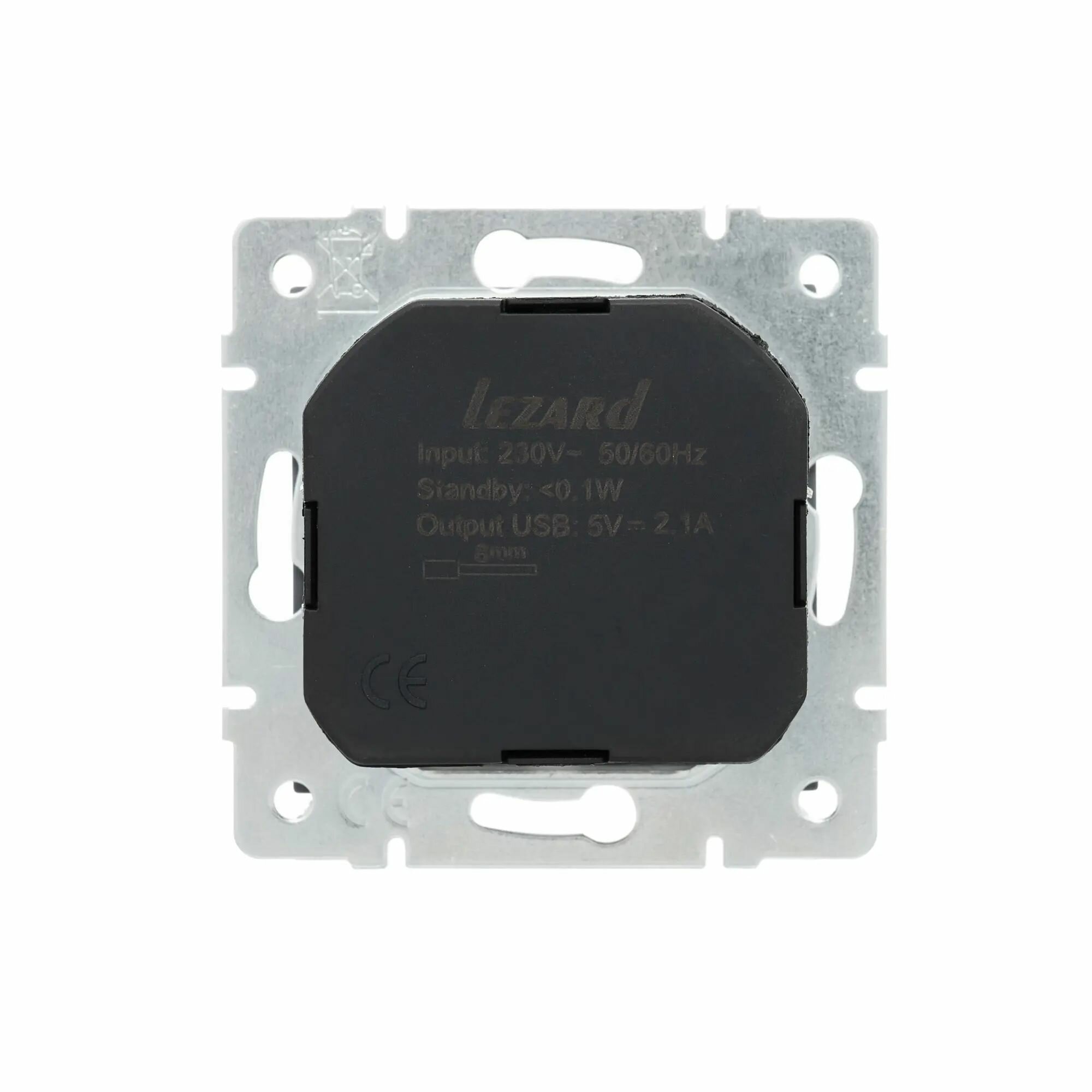 Розетка USB двойная встраиваемая Lezard Vesna 742-3488-181 с заземлением цвет графит информация: