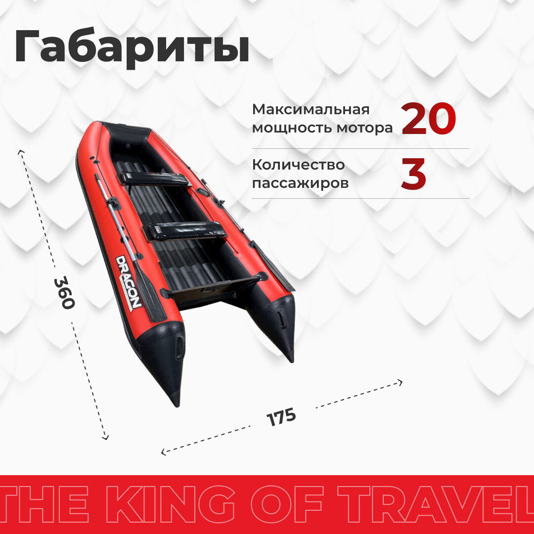 Лодка ПВХ Dragon 360 Sport НДНД с надувным дном,красная, 3 места, 650кг, 20лс, надувное дно, вес 44кг, для рыбалки информация: