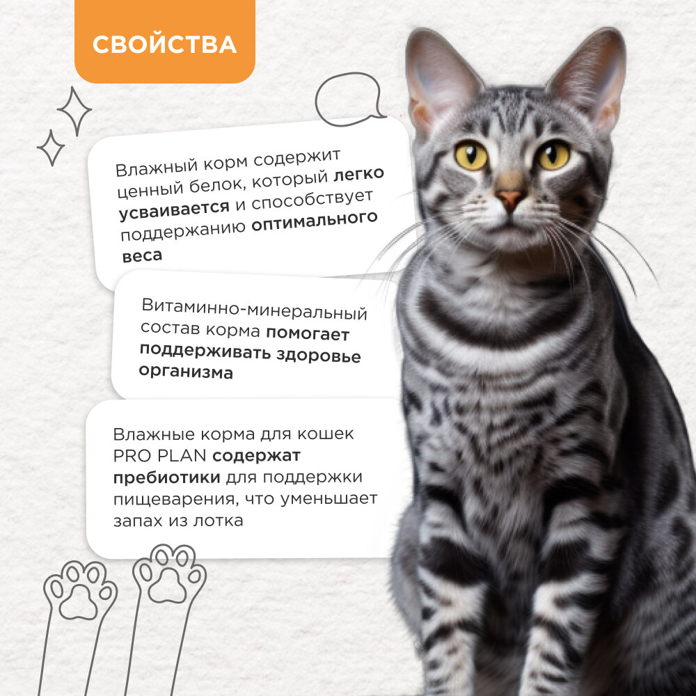 Влажный корм PRO PLAN для домашних кошек, лосось в соусе, пауч, 85 г