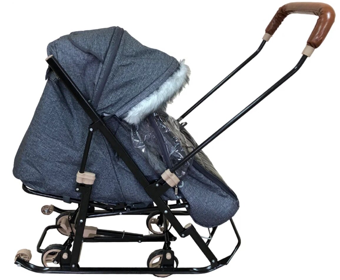 Санки-коляска Galaxy Glory Gloss Лён крупный черный информация: