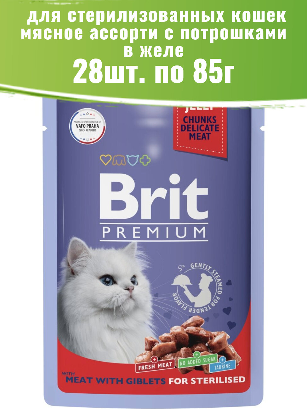 10 цен на Brit Premium 28шт по 85г корм для стерилизованных кошек, мясное ассорти с потрошками в желе