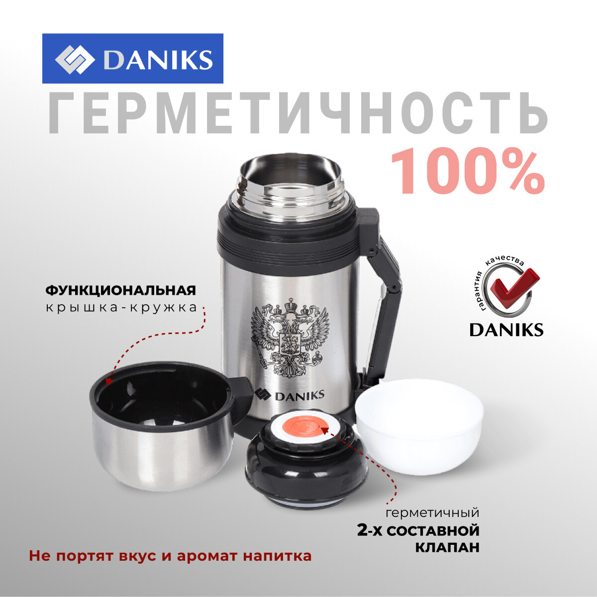 Классический термос Daniks SL-100GX, 1 л, с широким горлом, колба сталь, серебристый