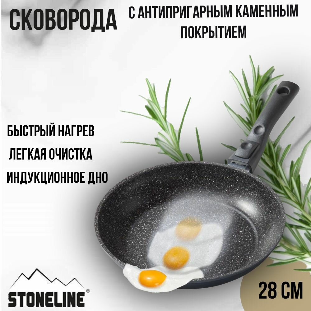 10 цен на Сковорода Stoneline 28 см глубокая с каменным покрытием, со съемной ручкой и индукционным дном