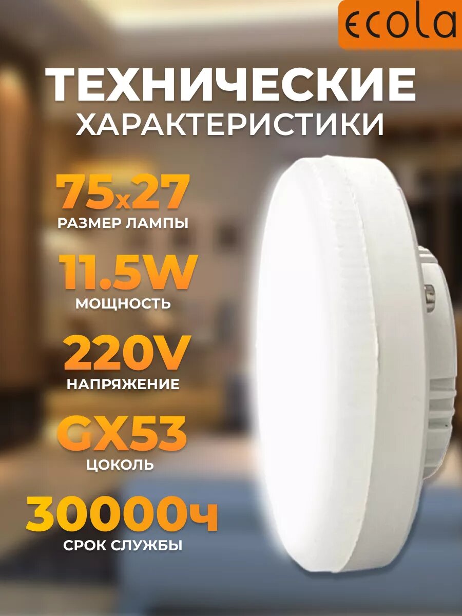 Лампа светодиодная Ecola Light GX53 11,5W 2700K тёплый белый свет 27x75мм (лампочка Экола Tablet 220V LED 11,5 Вт) 139 ₽