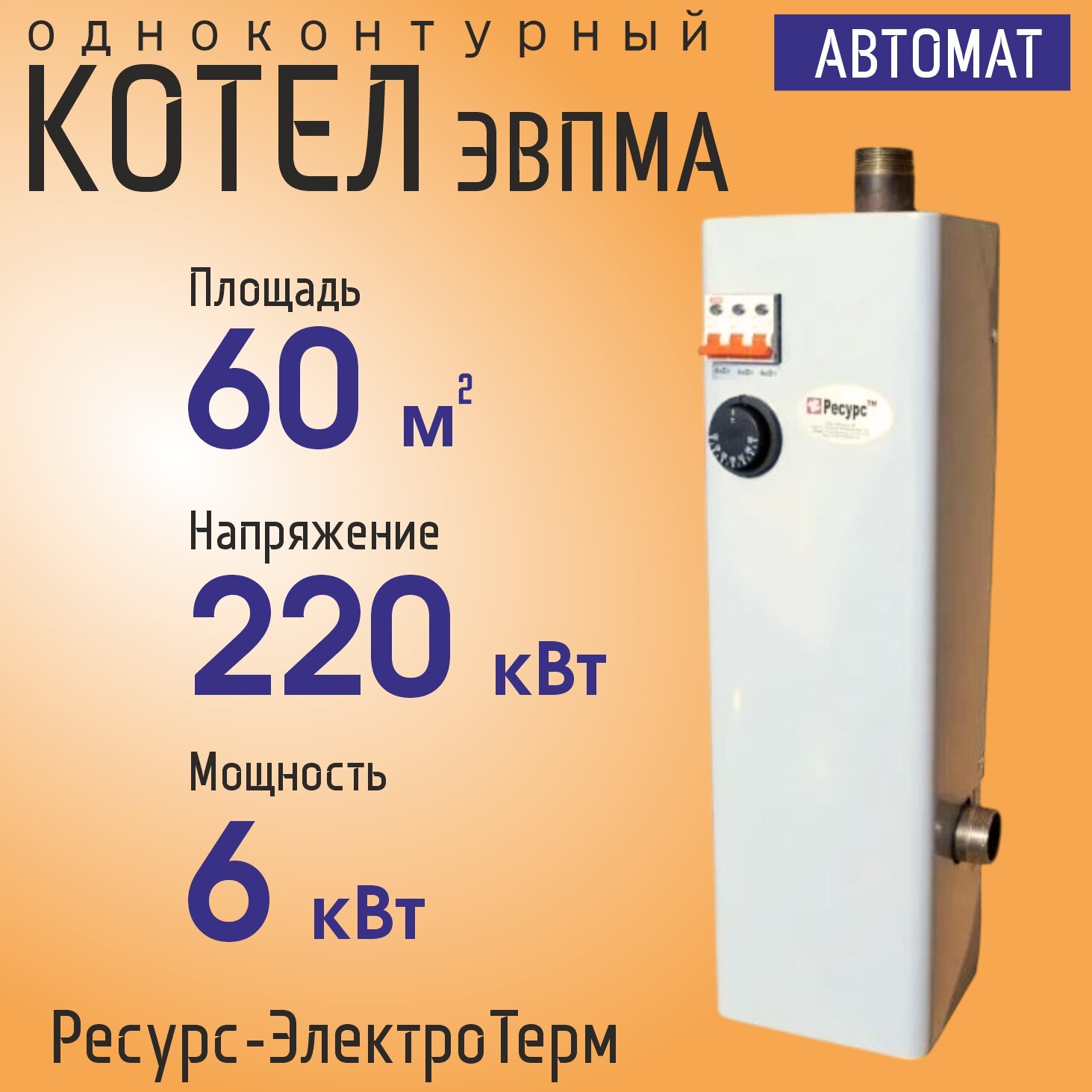Электрокотел Ресурс-ЭлектроТерм, настенный, однофазный, мощность 6 кВт Автомат информация: