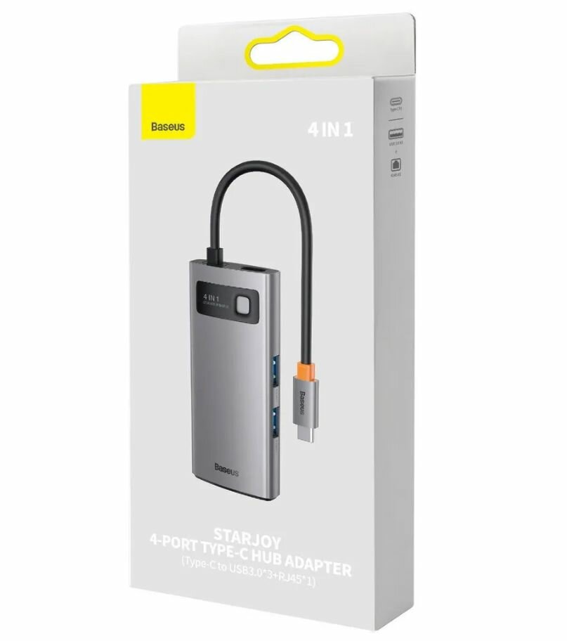 Хаб / Концентратор серии Baseus Metal Gleam 4 в 1 Док-станция USB Type C - 3 x USB 3.2 Gen. 1 / RJ45 (WKWG070113)