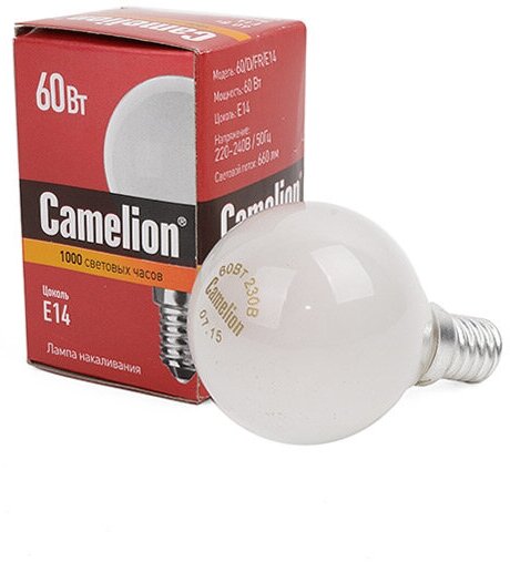 Отзывы на Лампа накаливания Camelion 9870, E14, D45, 60Вт,/FR матовая 2700 К
