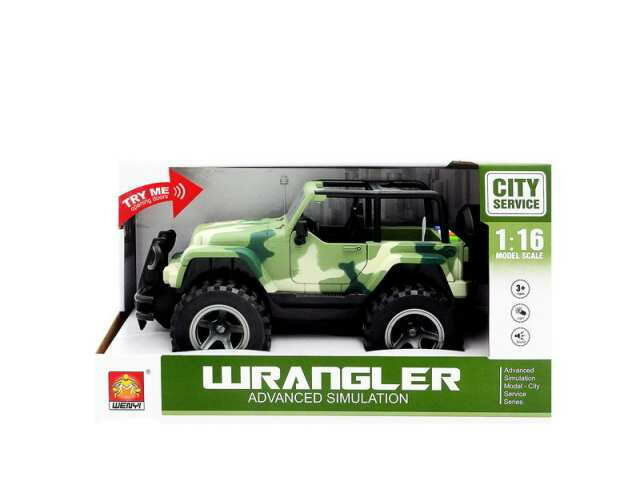 Машинка Джип (зеленый цвет), пластмассовая, инерционная,1:16, световые и звуковые эффекты, 27x14x15,5см