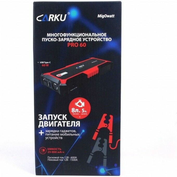 CARKU PRO-60 Портативное зарядное устройство CARKU PRO-60, 25000 мАч, запуск авто, заряд ПК и телефонов 1шт
