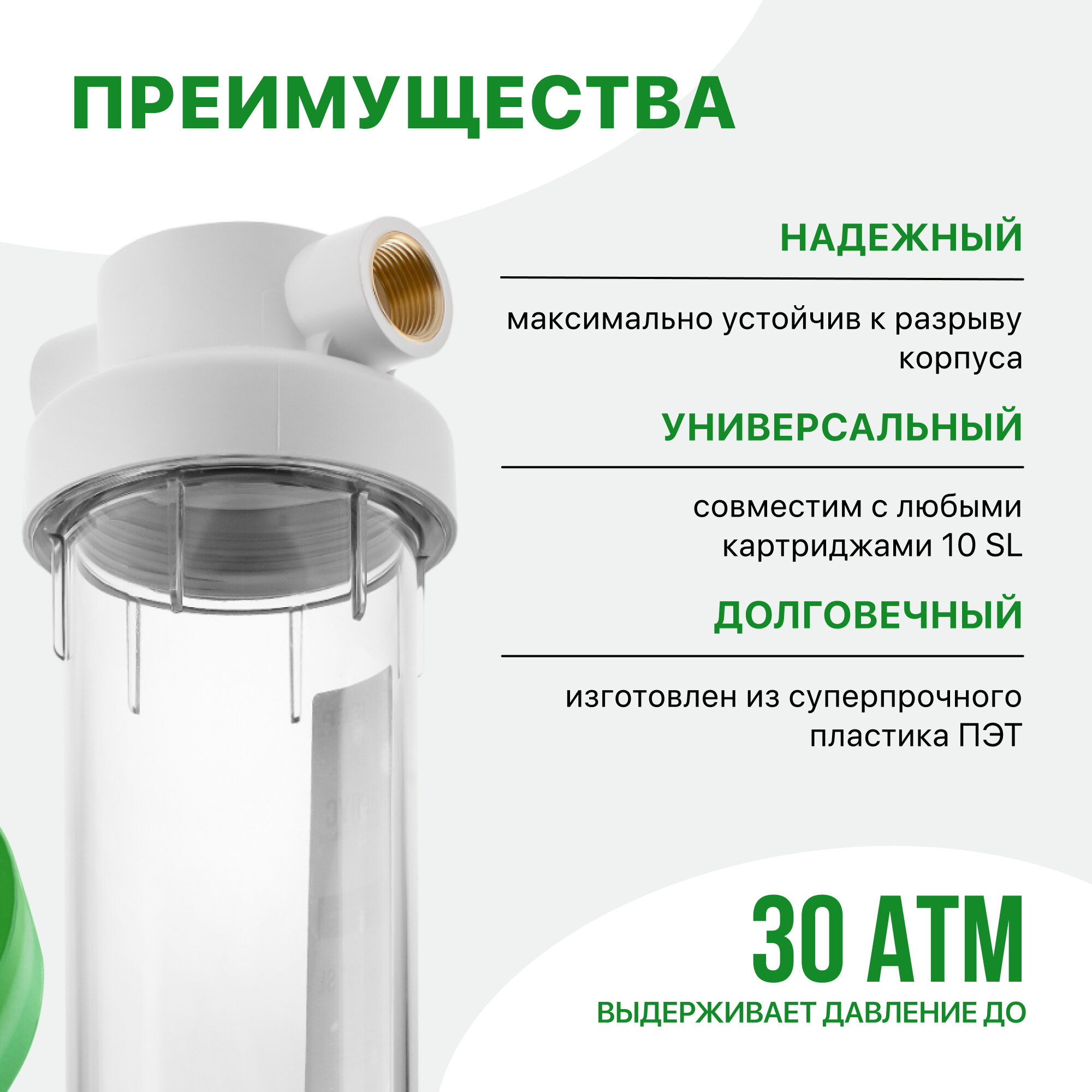 Корпус (колба) для фильтра BP-16 (2к), диаметр 1" с картриджем PP-10SL 5 мкм, корпус фильтра пластиковый / фильтр 10sl для Аквафор, Барьер, Гейзер
