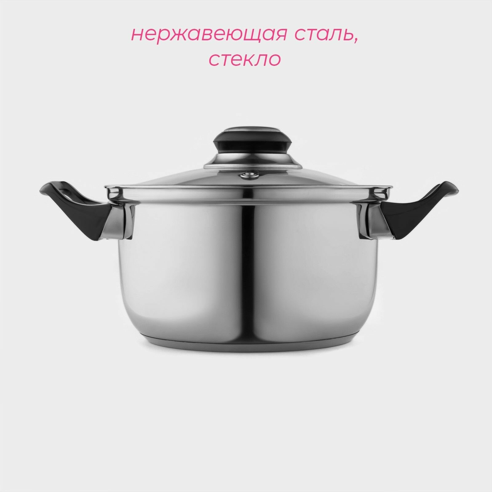Кастрюля из нержавеющей стали "Чёрная ночь", 3 л, стеклянная крышка 1 996 ₽