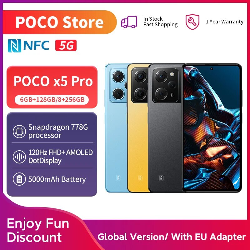 Смартфон Poco X5 Pro 5G, 128 Гб/256 ГБ, Snapdragon 778g, 120 Гц, AMOLED, МП, Вт, 8GB 256GB, Poco, X5 Pro 5G, Смартфон, Черный, 8ГБ, 256ГБ, global, новый
