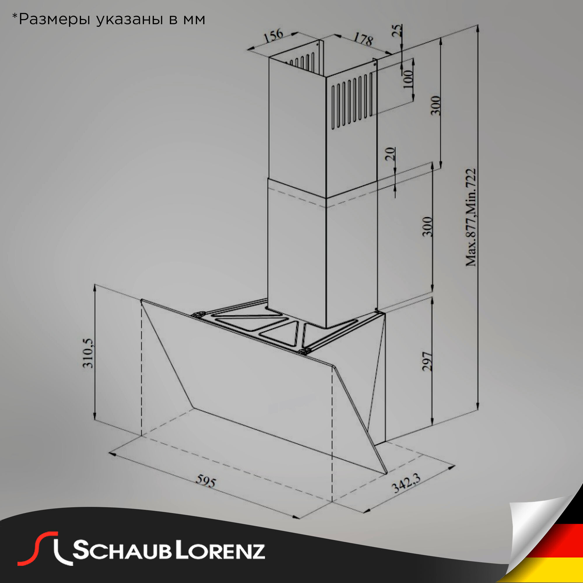Вытяжка кухонная наклонная Schaub Lorenz SLD DY6420, 60 см, 700 м³/ч, 3 скорости, черная 8 990 ₽
