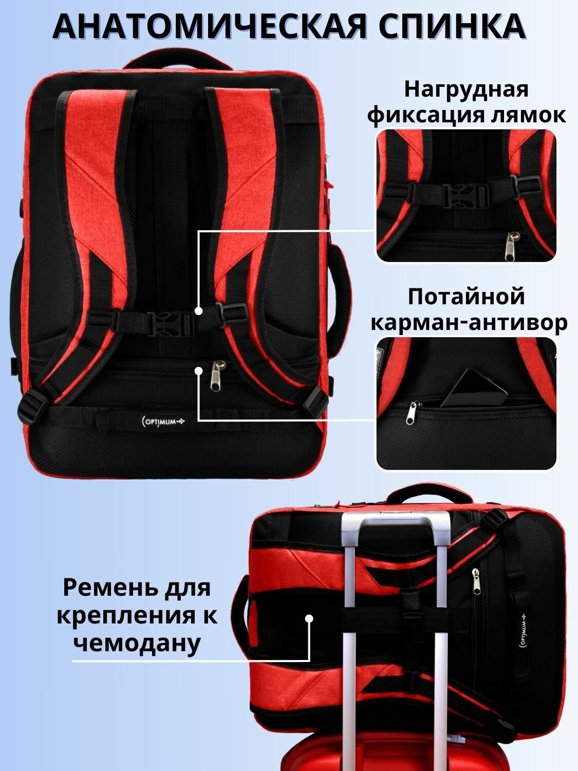 Рюкзак сумка чемодан ручная кладь 55х40х20 в самолет, красный информация: