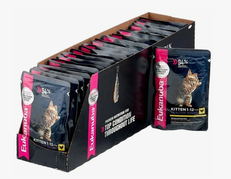 10 цен на Eukanuba KITTEN HEALTHY START CHICKEN пауч влажный корм для котят курица в соусе, 85 гр - 24 штуки