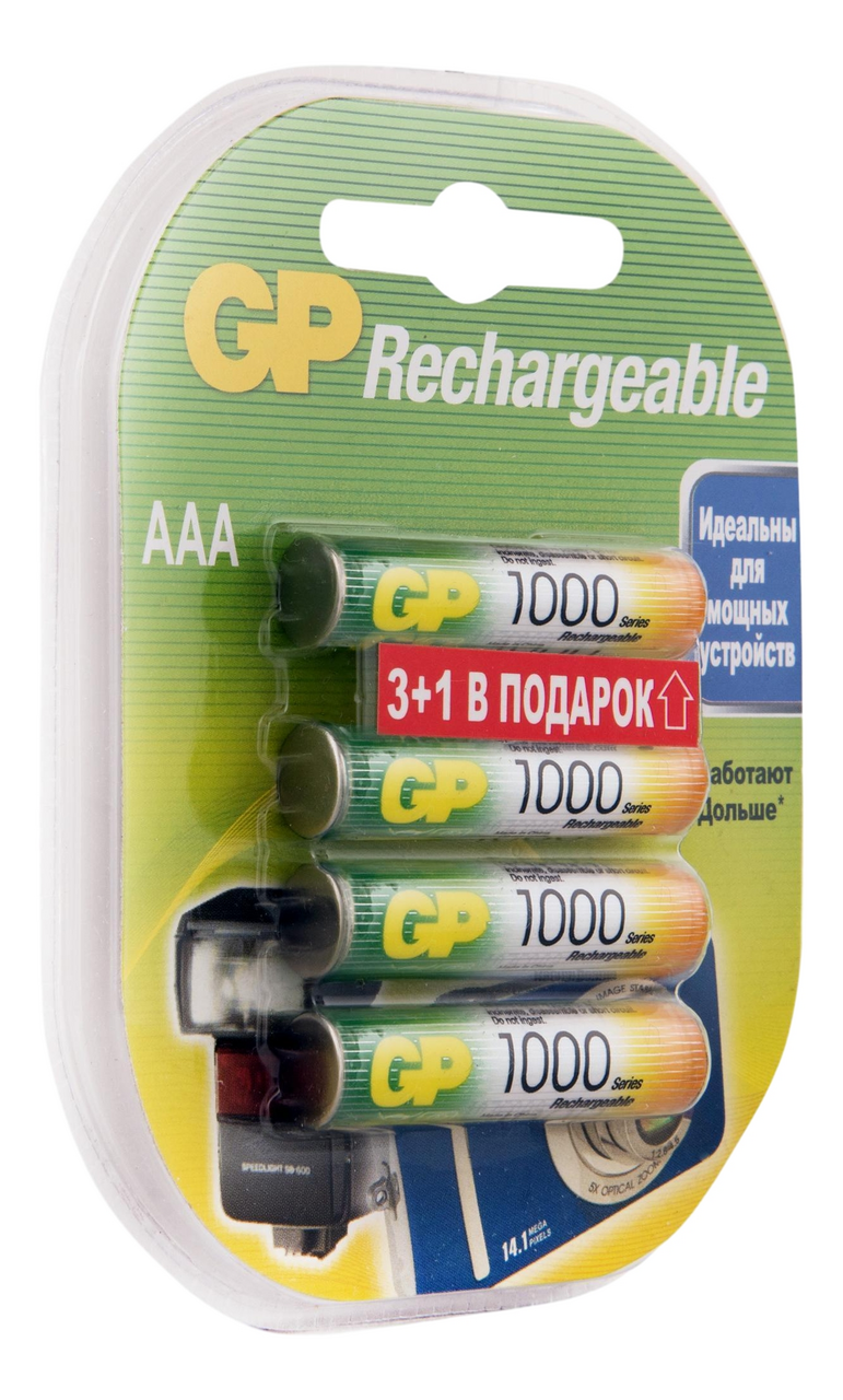 Отзывы на Аккумулятор GP 100AAAHC3/1 AAA NiMH 1000mAh (промо:3+1) (4 штуки)