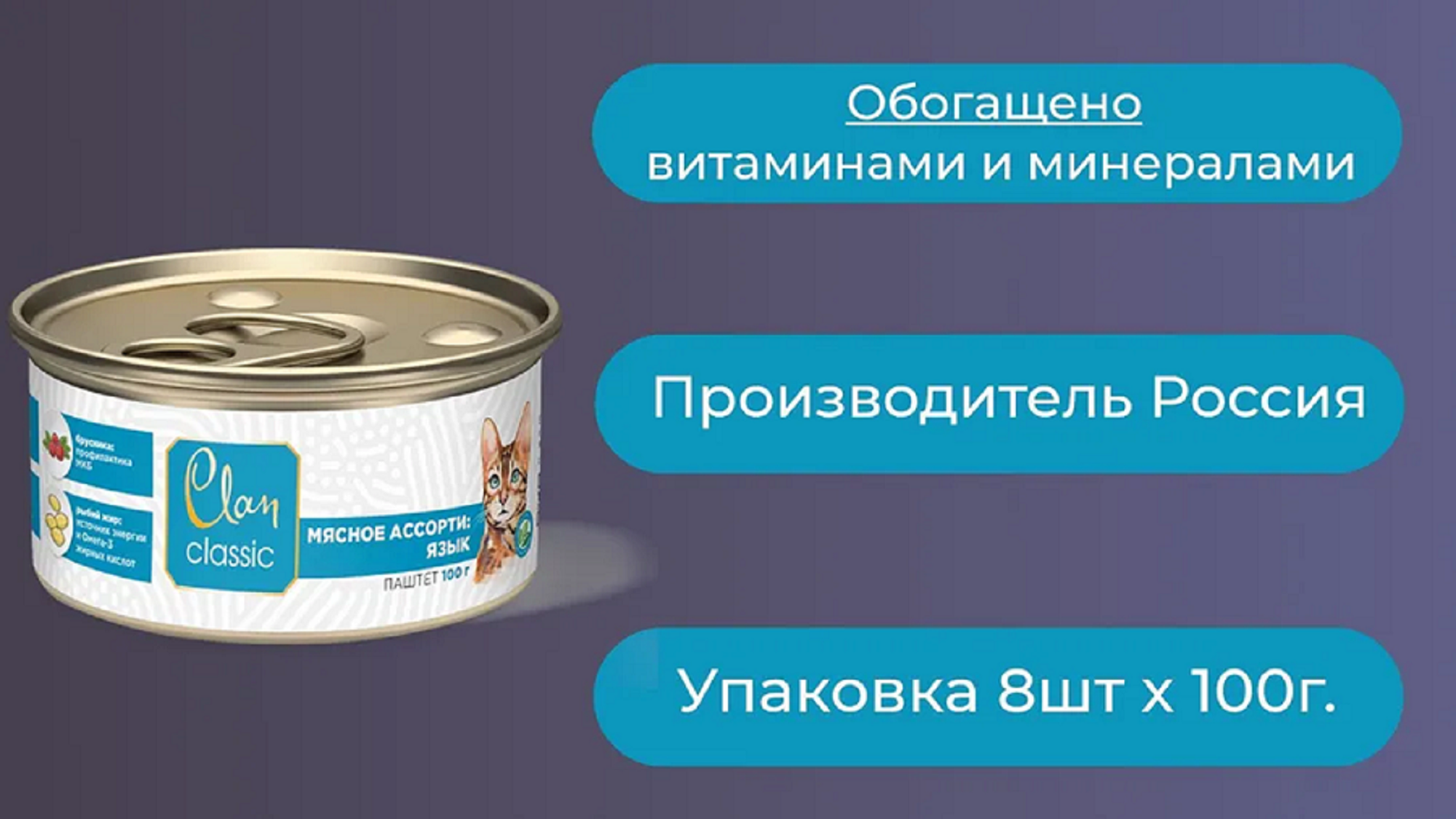 Clan CLASSIC паштет для кошек 100 с языком (8 банок) информация: