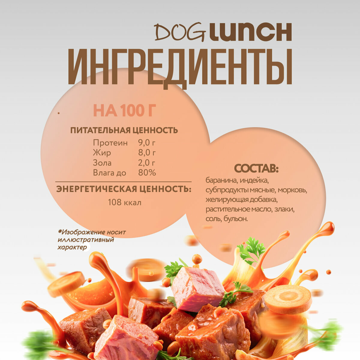 Dog Lunch консервированный корм для собак Ягнёнок с индейкой в соусе 750г информация: