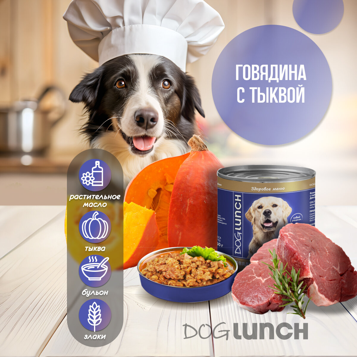 Dog Lunch консервы для собак Говядина с тыквой в соусе 750г информация:
