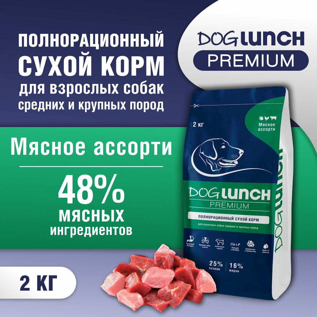 Dog Lunch Премиум сухой корм для собак средних и крупных пород мясное ассорти 2кг информация: