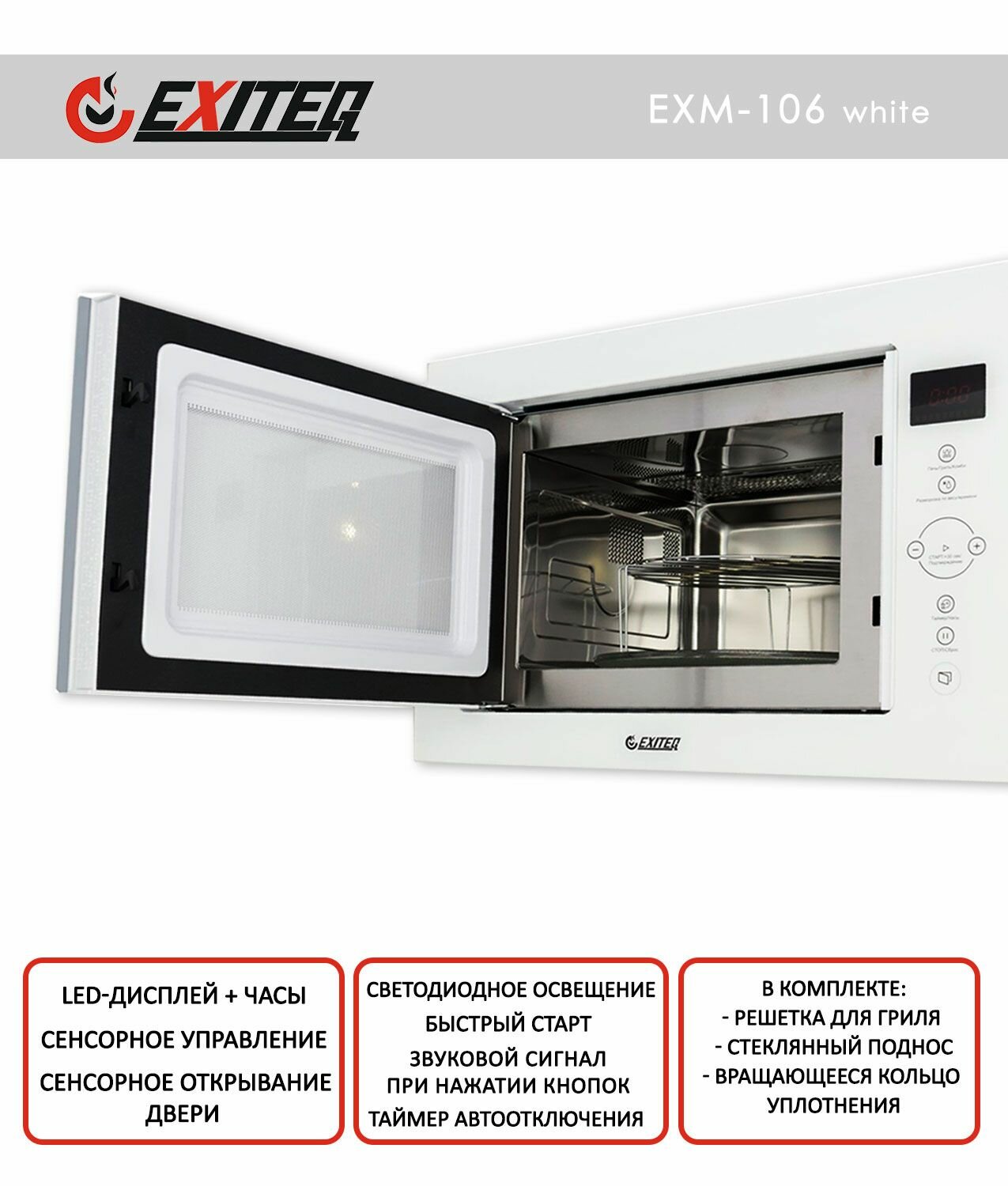 Встраиваемая микроволновая печь СВЧ Exiteq EXM-106 white информация:
