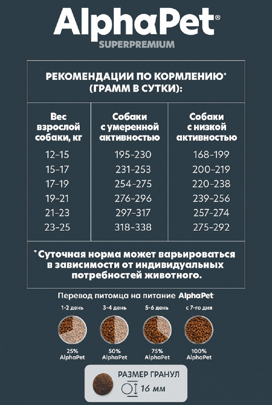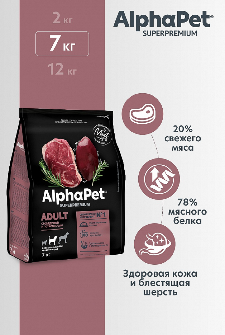 Сухой корм AlphaPet Superpremium для взрослых собак средних пород, с говядиной и потрошками, 7 кг информация: