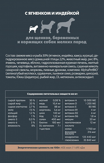 Сухой корм Alphapet Superpremium для щенков мелких пород с ягненком и индейкой, 500 гр информация: