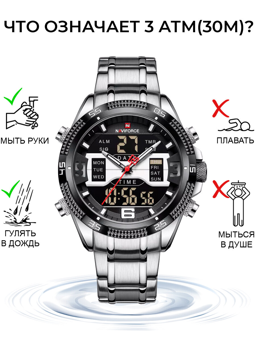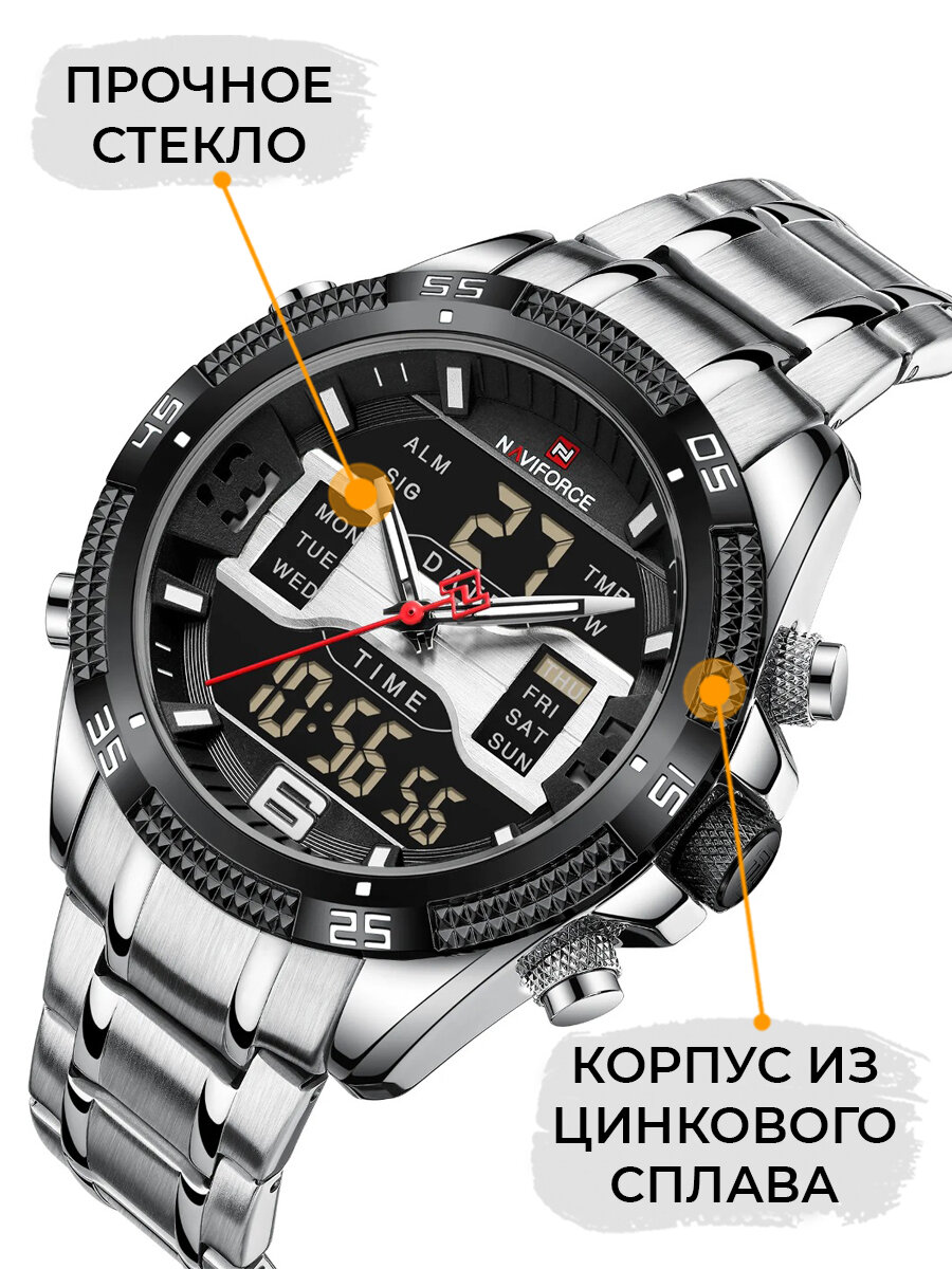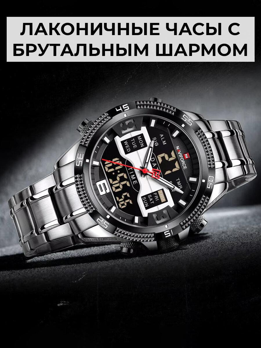 Отзывы на Часы наручные мужские электронные кварцевые Naviforce с таймером и подсветкой, круглые, серебристые/черные