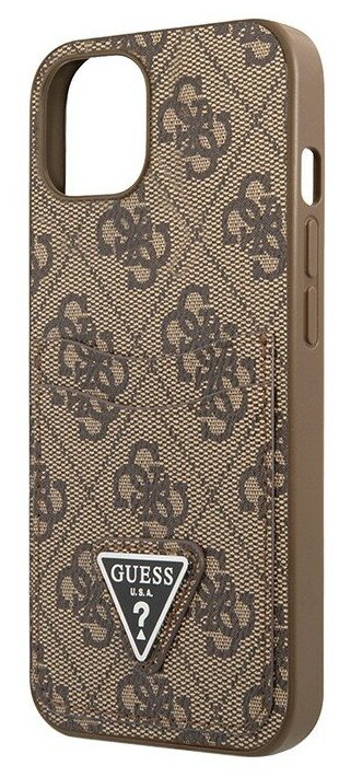 Guess чехол с карманом для карт на iPhone 14, PU кожа 4G Double cardslot Metal triangle logo коричневый информация: