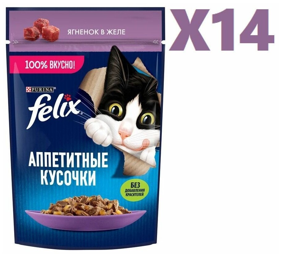Влажный корм Felix Аппетитные кусочки с ягненком в желе 75г 14 шт информация: