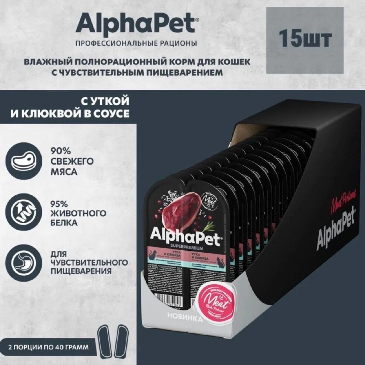Отзывы на Влажный корм Alphapet Superpremium Альфа Пет для взрослых кошек с чувствительным пищеварением Утка клюква в соусе (15 шт * 80 гр)