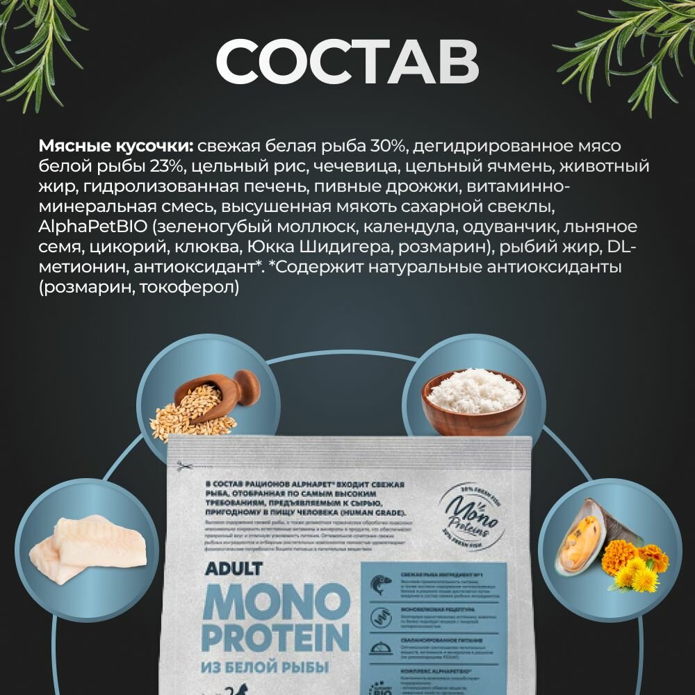 AlphaPet MONOPROTEIN сухой корм для кошек, из Белой рыбы 400г информация: