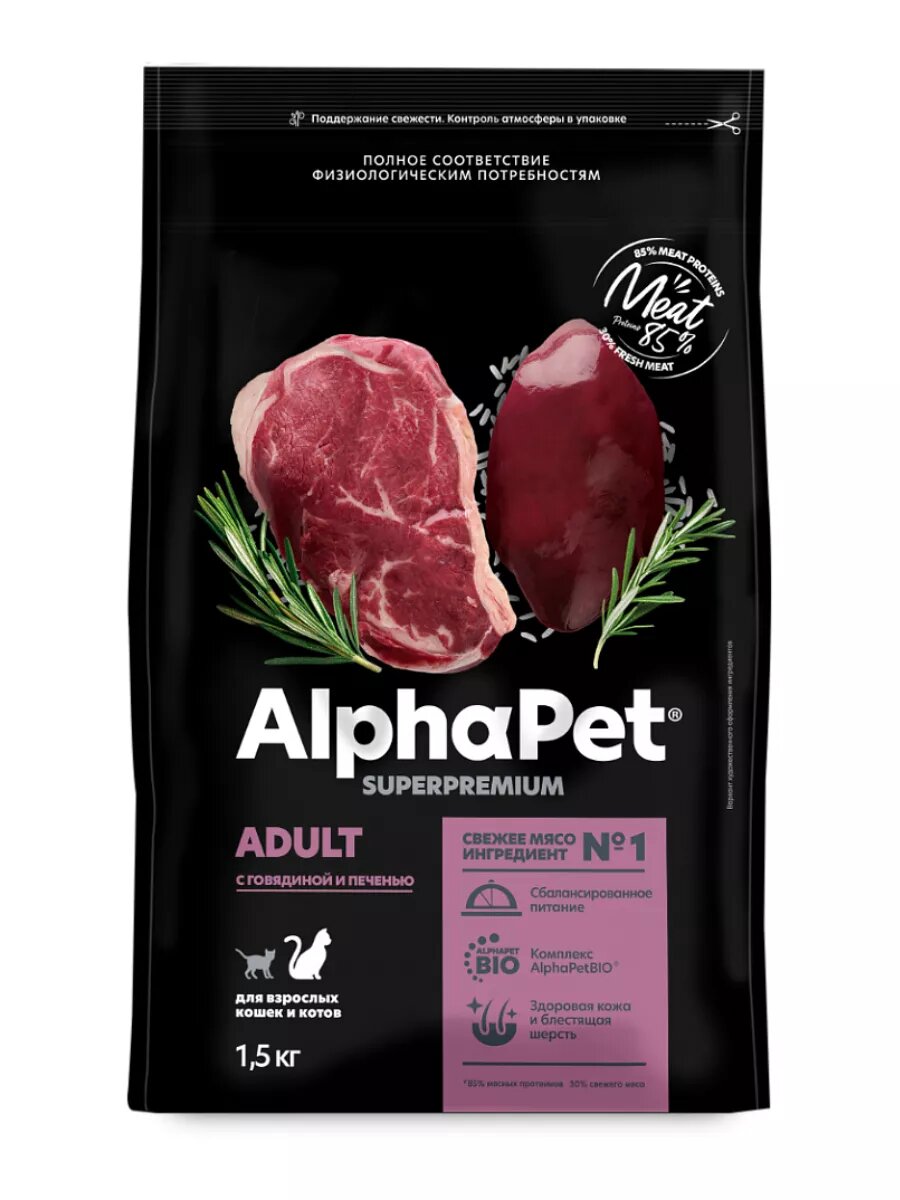 Сухой корм AlphaPet Superpremium для взрослых кошек с говядиной и печенью 3 кг 2 500 ₽