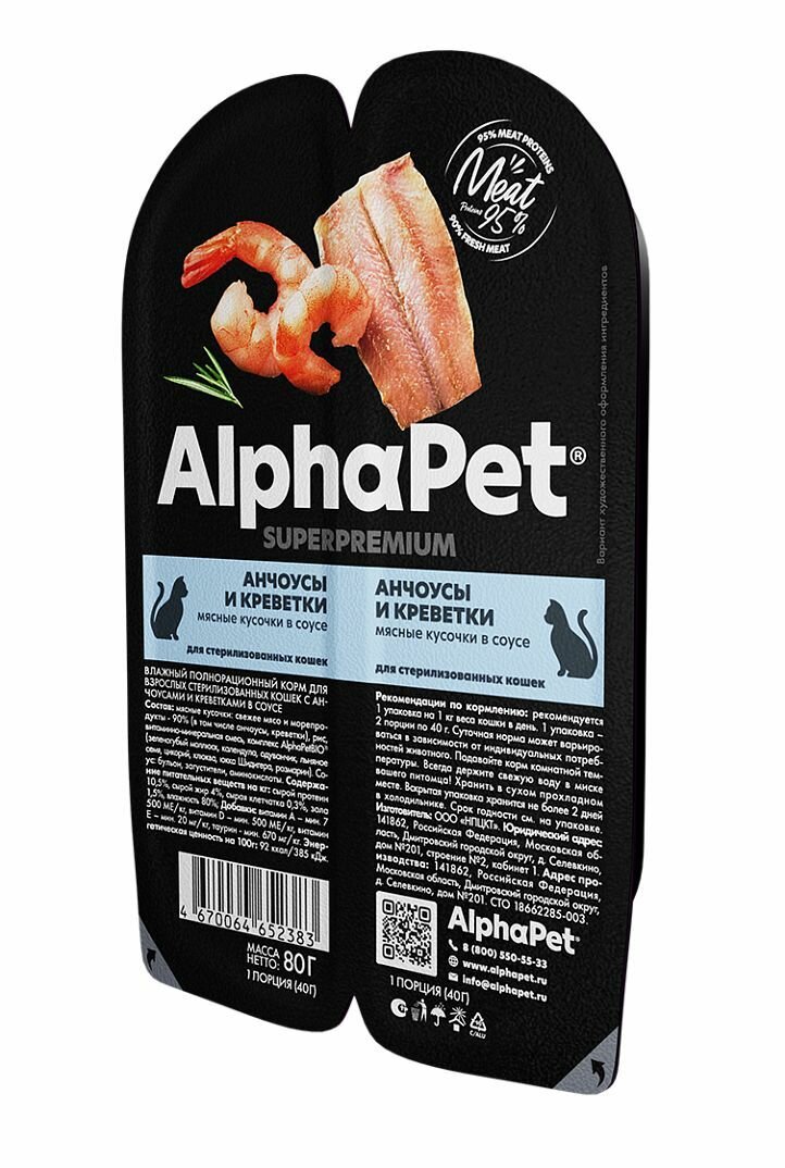 ALPHAPET SUPERPREMIUM 80 гр ламистер влажный корм для стерилизованных кошек анчоусы и креветки 30 шт 3 815 ₽