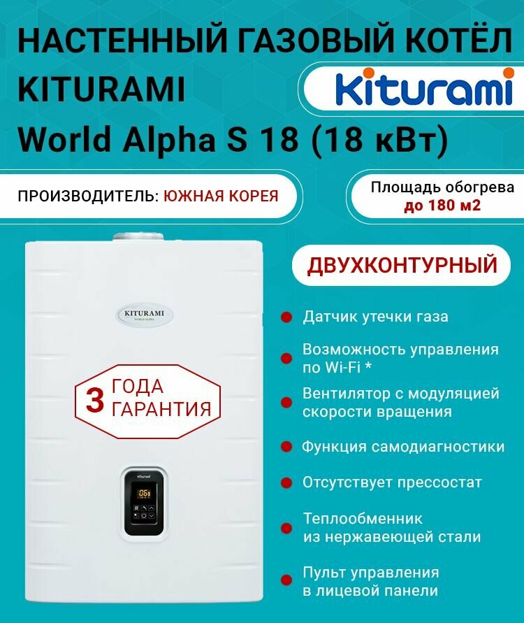 10 цен на Котел газовый (18 кВт.) Kiturami World Alpha S-18 (Китурами) турбированный двухконтурный