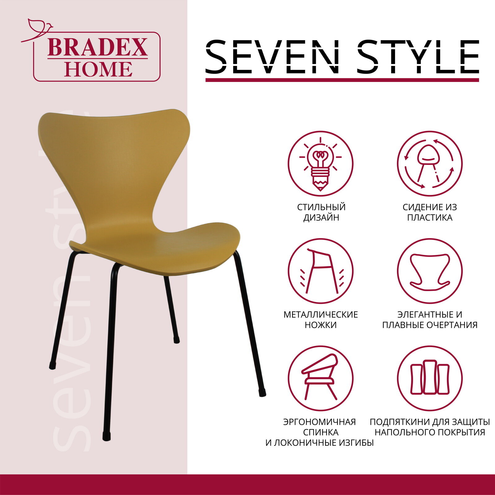 10 цен на Стул Seven горчичный с чёрными ножками