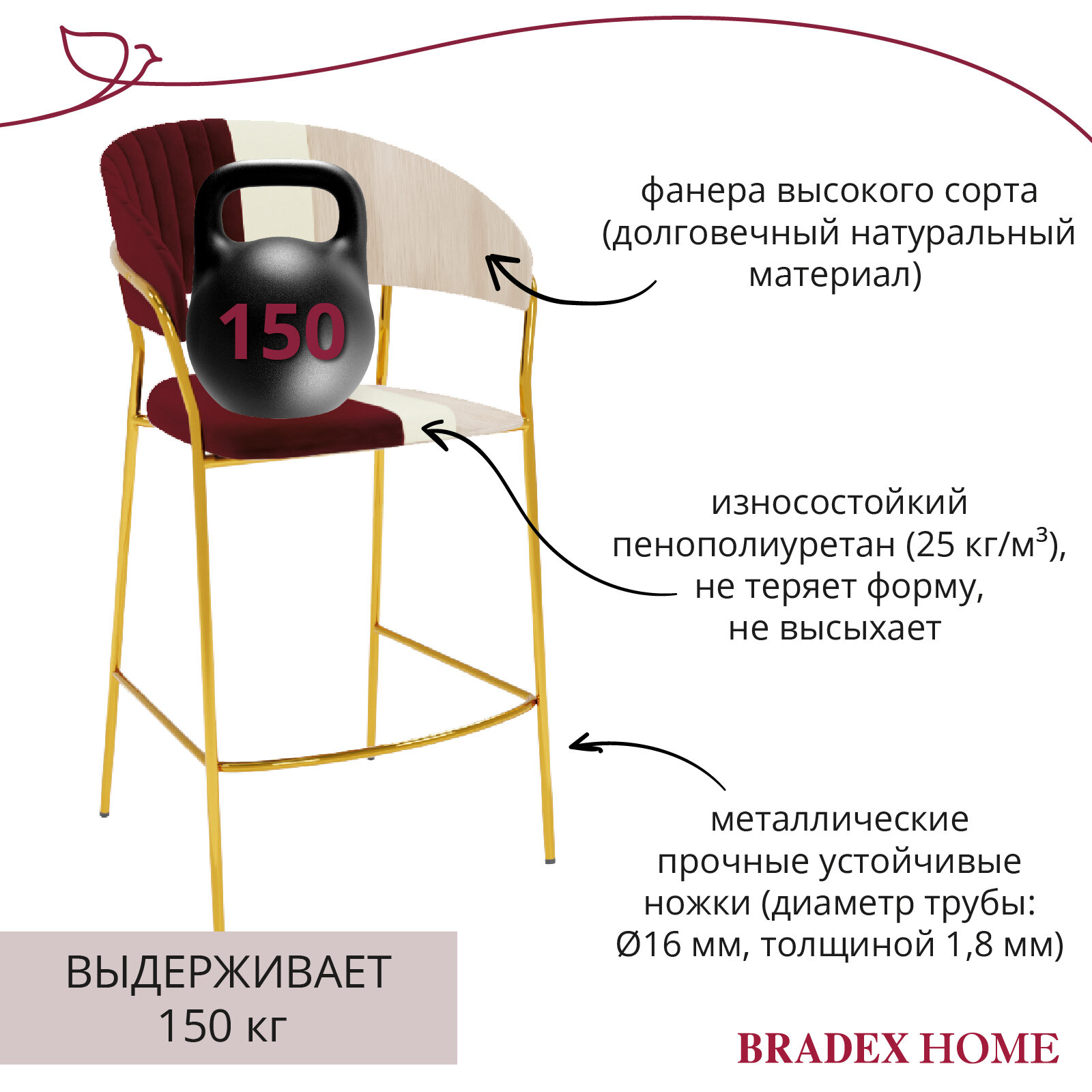 Отзывы на Стулья для кухни 2 шт полубарные мягкие со спинкой велюр Turin винный красный с золотыми ножками