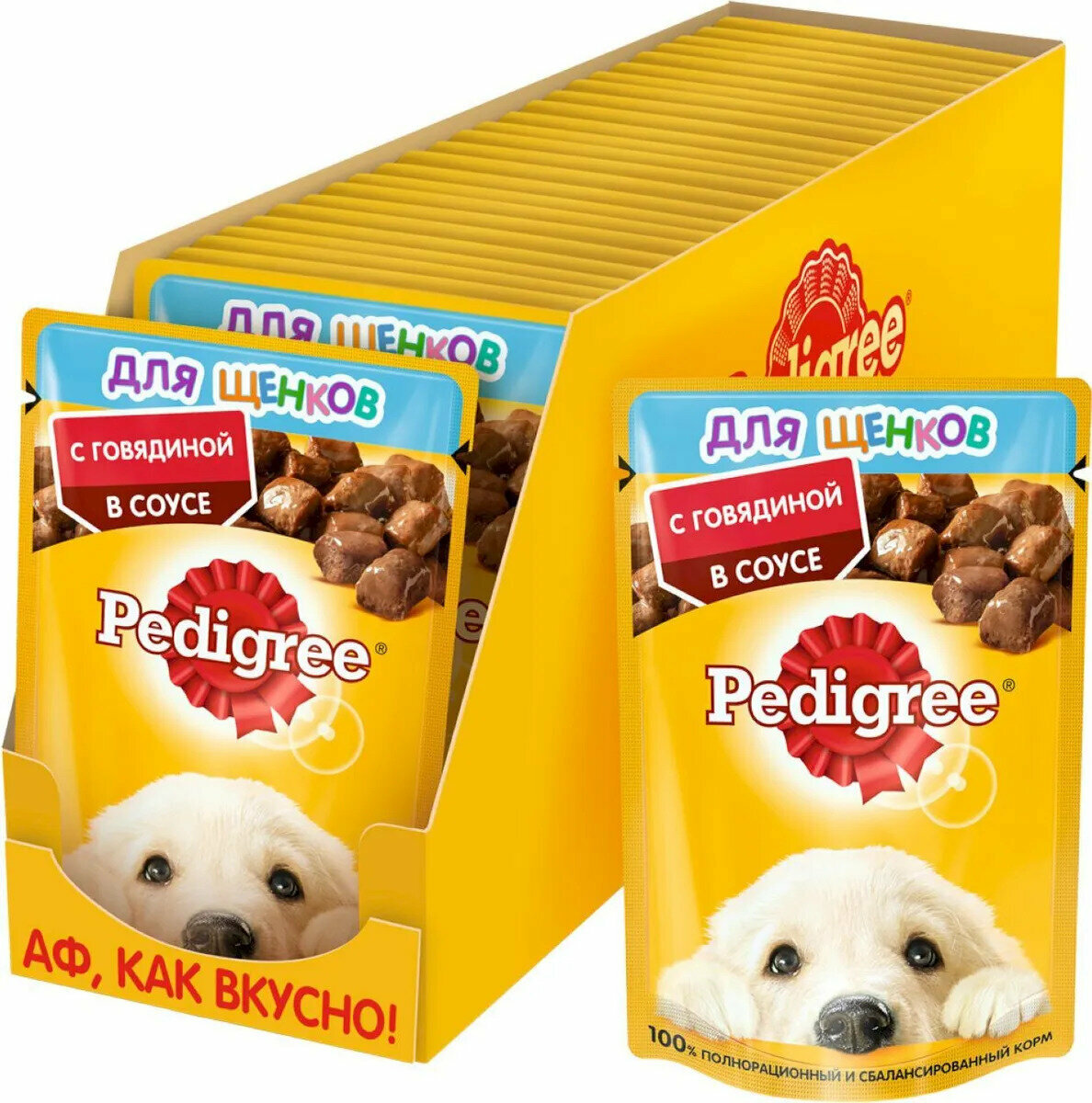 Корм влажный Pedigree для щенков всех пород, с говядиной в соусе, 28шт х 85г