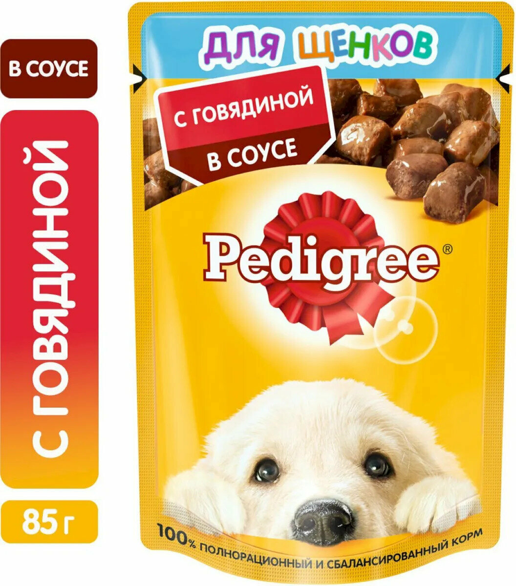 Корм консервированный для щенков PEDIGREE с говядиной в соусе, от 1 месяца, полнорационный, 85г, 24 шт. информация: