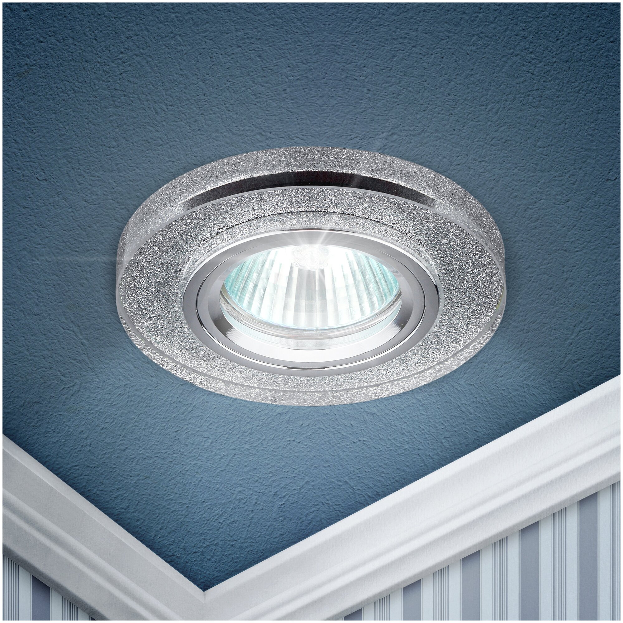 Светильник ЭРА декор стекло круглое MR16,12V/220V, 50W, хром/серебряный блеск DK7 CH/SHSL арт. C0043736 (1 шт.)