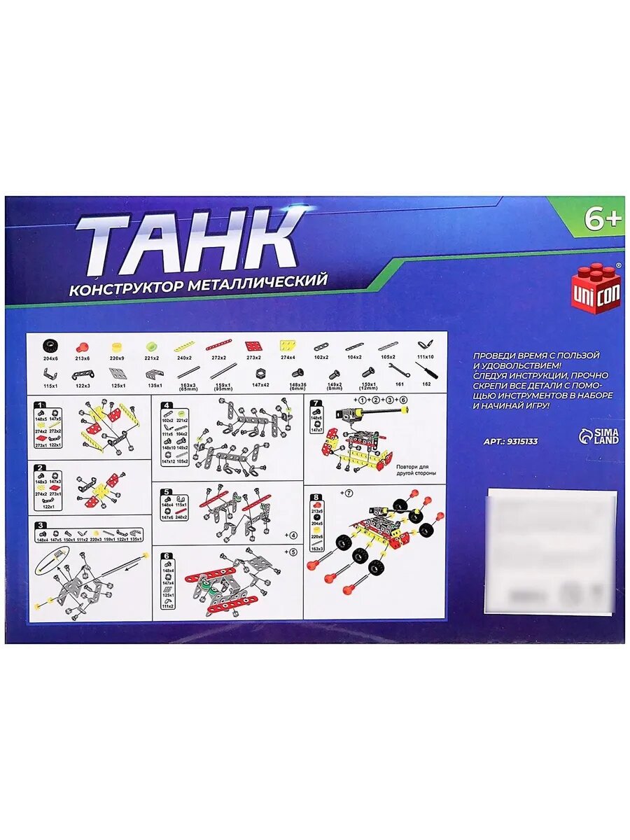 Конструктор металлический Танк 140 деталей информация: