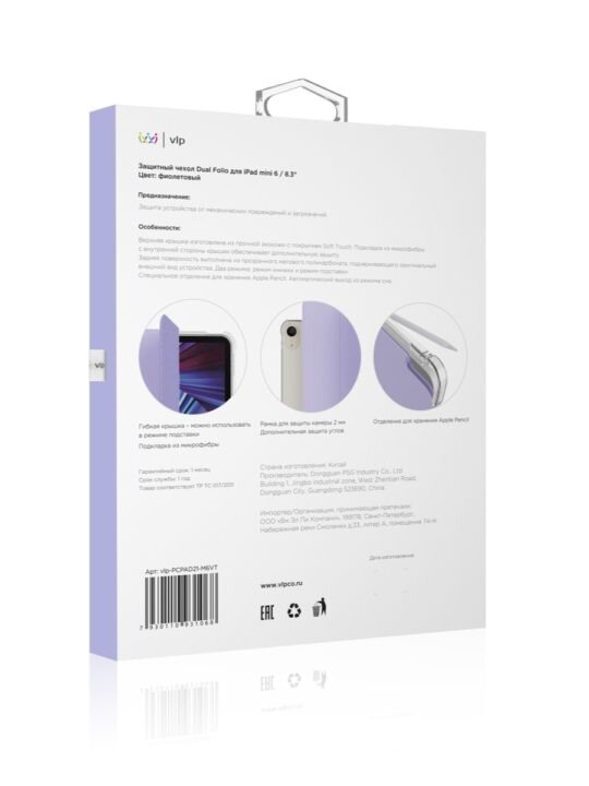 Чехол для планшета vlp для iPad mini 6 8.3" (2021) Dual Folio, фиолетовый информация:
