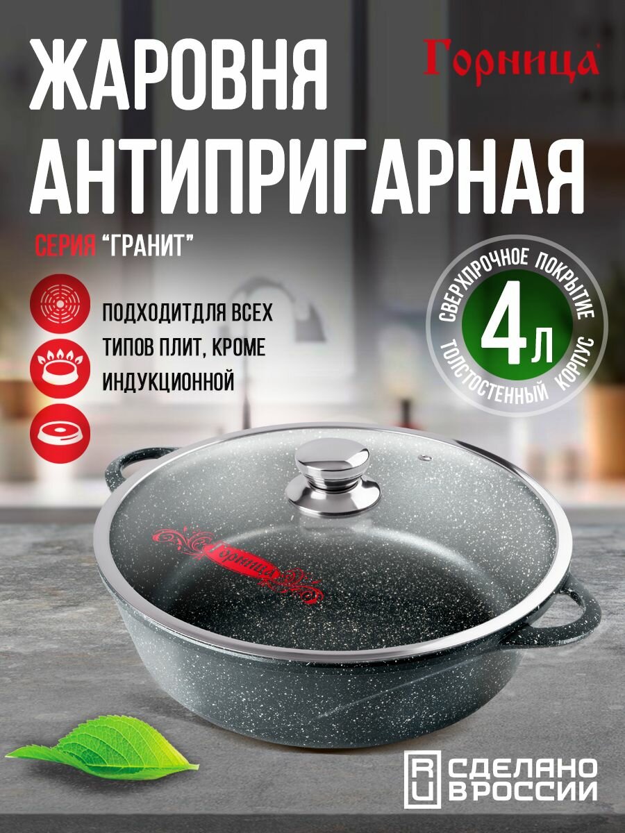 10 цен на Жаровня антипригарная литая 4 л со стеклянной крышкой Гранит ТМ Горница