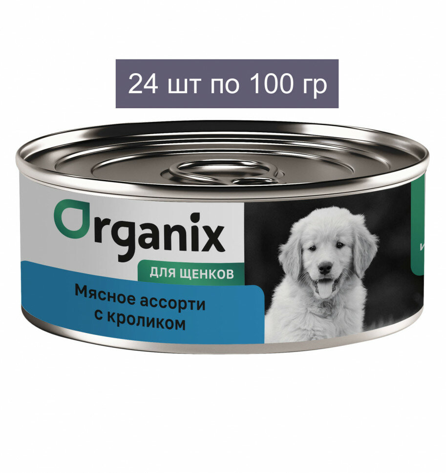 10 цен на Organix Консервы для щенков Мясное ассорти с кроликом 24 шт по 100 г